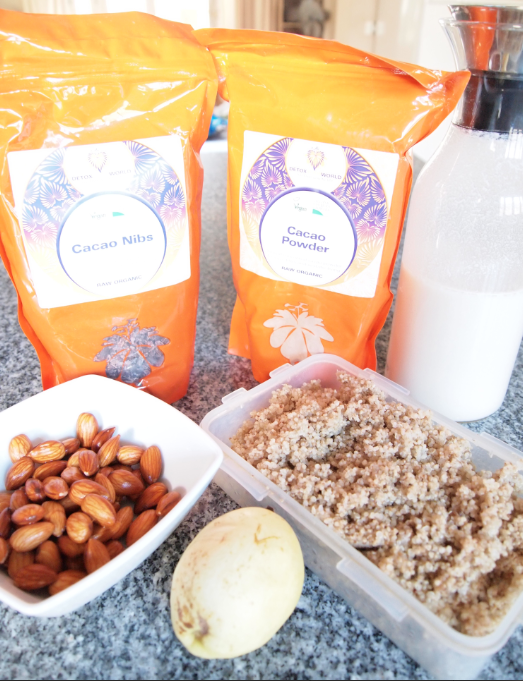 To really get into the chocolate theme this morning, and to use up my almond milk before it turns, I made a chocolate Super Milkshake. It couldn't be easier - almond (or other) milk, raw cocoa powder - blend or whizz! To turn this from a regular Milkshake into a Super Milkshake I also added one teaspoon of macca powder and one teaspoon of chlorella (sister to spirulina). Milky, creamy, chocolatey and I know I won't have to even think about food again until well into the afternoon! Oh, and I feel sooooo happy! :-) Have a great day everybody!